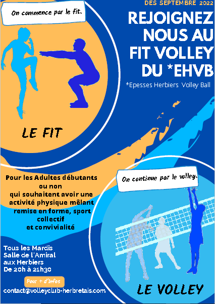 Convivialité, dépense d'énergie, le "FIT VOLLEY" associe une partie fitness (gym tonic, renforcement musculaire) et une partie jeu Volley pendant la même séance. L'activité peut s’adapter à tous les niveaux de pratique.